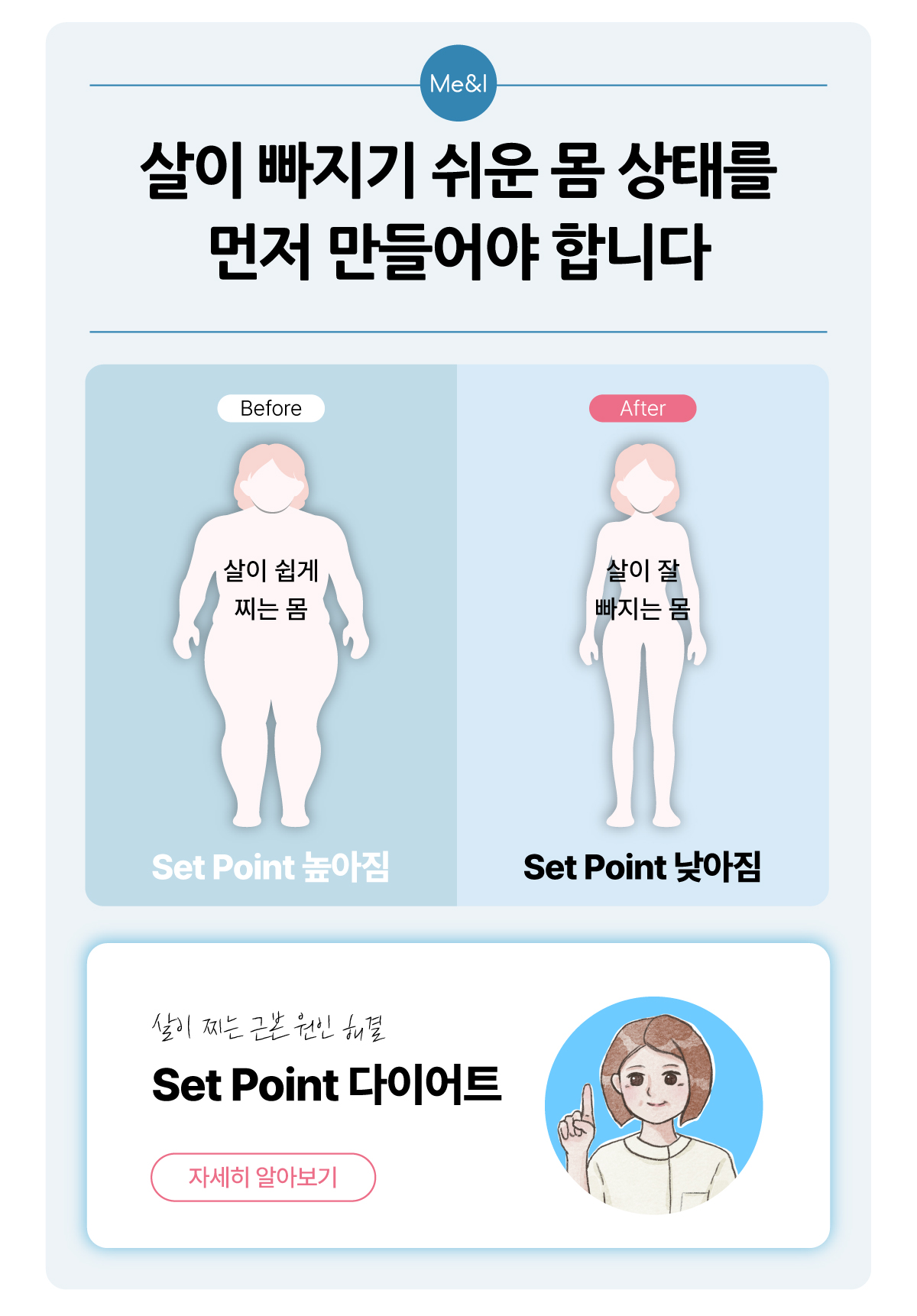 Set Point를 잡아 요요가 오지 않고 체질이 바뀔 수 있도록 치료합니다. |