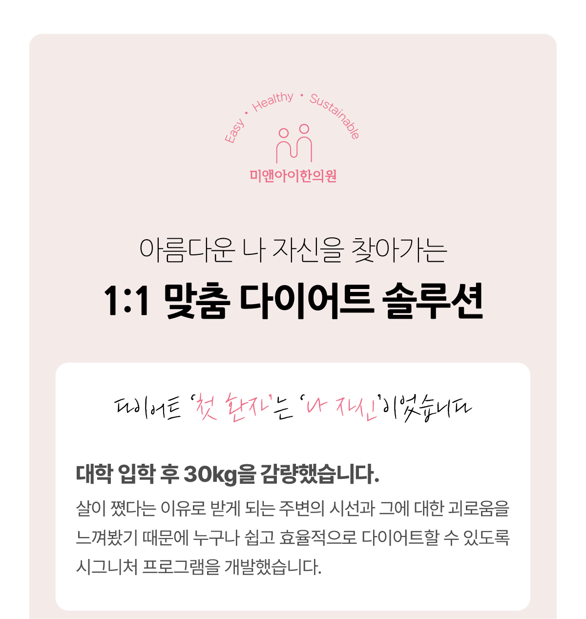 미앤아이 한의원을 찾으시는 분들의 마음에 공감합니다. 다이어트에 절실한 마음과 고민을 잘 알기에