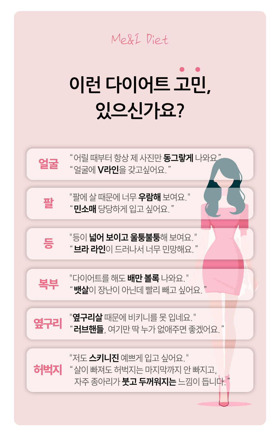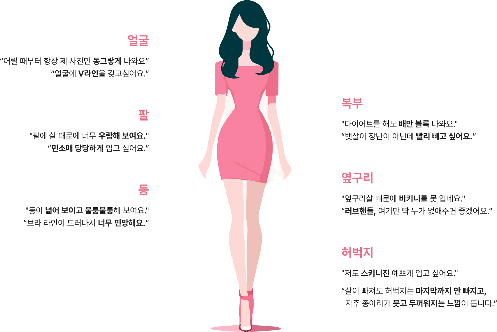 다이어트를 하기 전에도 후에도, 콤플렉스처럼 유독 신경 쓰이는 부위가 있습니다.