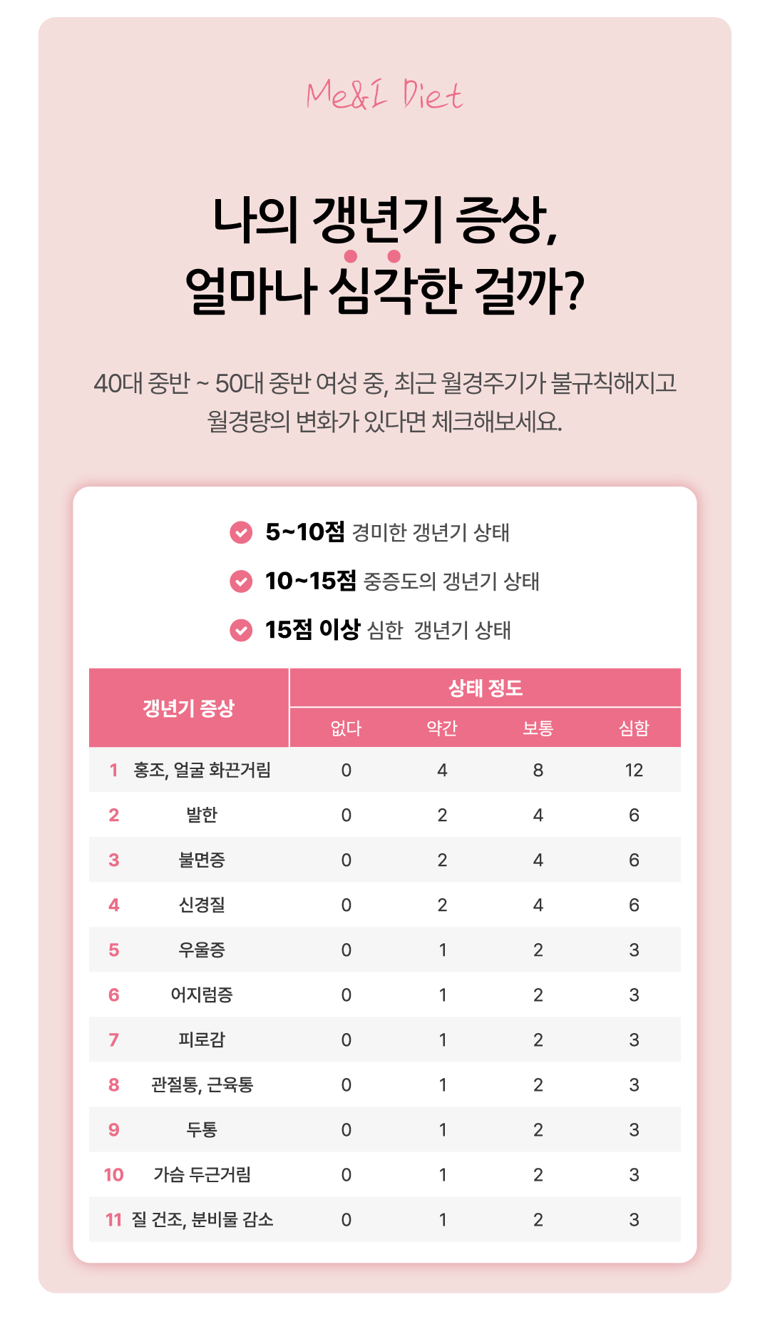 최근 월경주기가 불규칙해지고 월경량의 변화가 있다면 체크해 보세요.