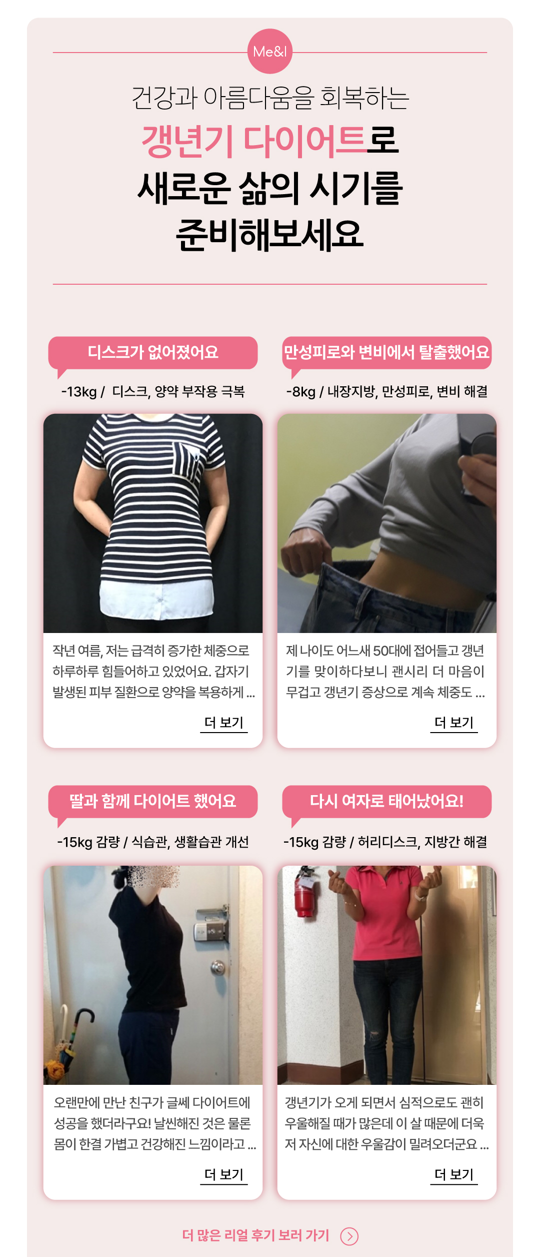 갱년기 다이어트를 경험하신 고객분들의 실제 후기를 확인해 보세요.