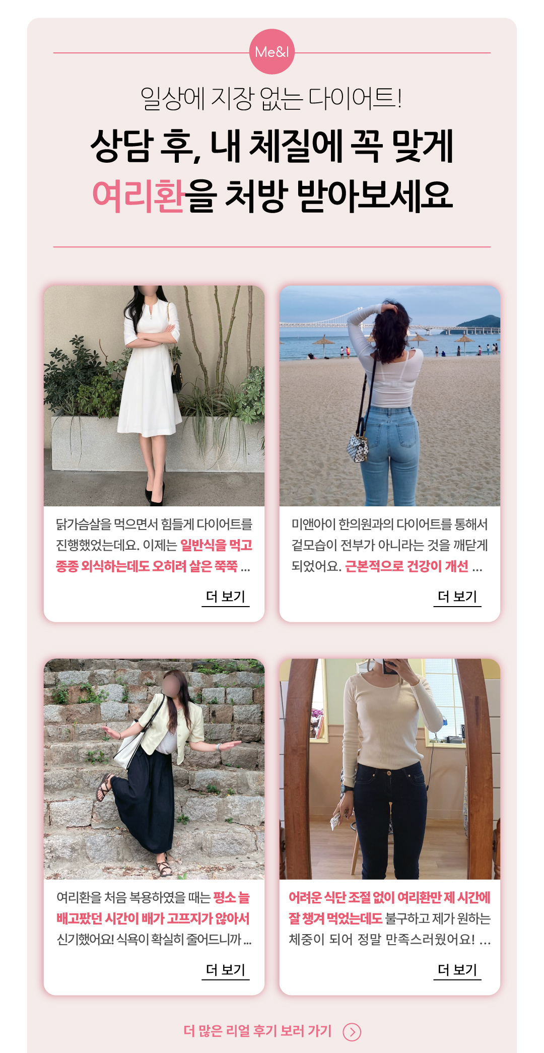 몇 개월 다이어트, 비용 부담 컸는데 여리환은 효과 좋고 가격도 착해서 아낀 돈으로 여행도 가고, 입고 싶은 옷도 더 샀어요